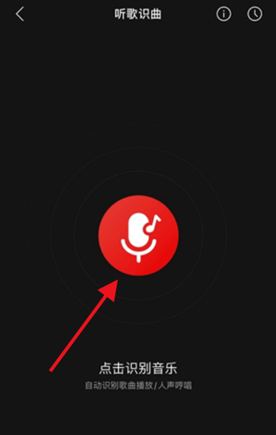 首先,打开网易云音乐,点击右上角的听歌识曲图标。