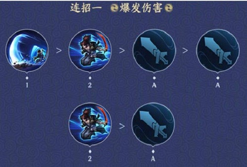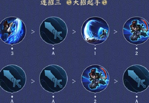 1:第一个连招,快速的使用一二技能,利用被动减少大量的冷却,短时间内爆发能力还是很高的,这个连招要二技能命中敌人才可以的