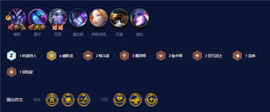 潘森:饮血,泰坦,无尽/正义/狂徒。赛芬:饮血,泰坦,狂徒。亚索:基克,基克,冰甲。
