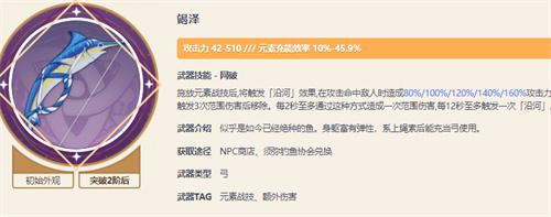 竭泽是须弥地区钓鱼协会的兑换武器,竭泽同样可以给温迪提供温迪所需的元素充能效率,并且武器技能还可以提高温迪的输出,竭泽也是是一个不错的选择。