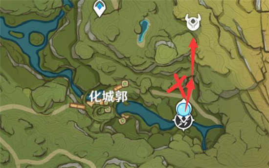 8、继续寻找符文X3:在这附近用寻找到石壁(可以用元素视野寻找),找到后使用小道具「苦舍桓」打开石壁,与金色光标交互即可。