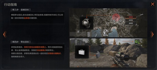 9.单人参与活动时危险系数较高,先锋们可邀请好友组队助力,拿到金条箱后快速确定撤离点,掩护运输人员撤离。成功带出金条箱后,需要在活动时间内前往活动页兑换奖励,值得注意的是达成一定数量即可换取”私人休息室钥匙“以及追捕行动限定“黄金猎人”头衔。