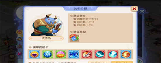 1、这一关可在自身拥有的卡牌里任选8张技能卡牌,选择的卡牌将在本次战斗中随机出现,数字卡牌随机出现不占用卡牌槽。