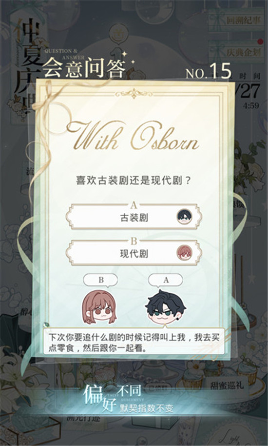 光与夜之恋会意问答第十五天答案汇总
