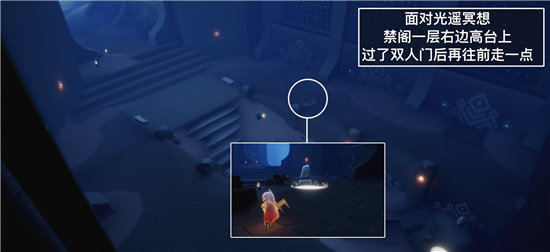 完成方法:在禁阁一层过了双人门再往前走一点的石碑前光圈处打坐并冥想