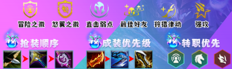开局装备:反曲之弓。装备优先考虑先做出鬼索的狂暴之刃。
