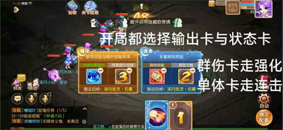 3、有输出卡就放强化,回复卡就放连击。