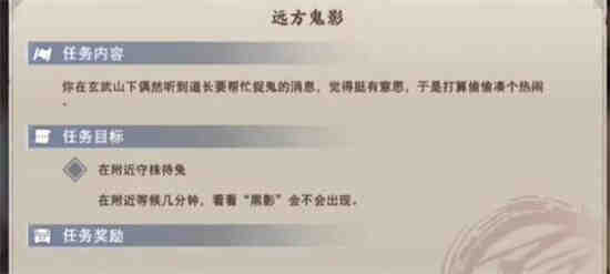 1、我们可以通过前往玄武山找到NPC【铁匠】,和他对话领取【远方鬼影】轶事任务。
