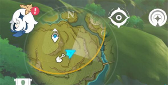 4、看到蓝色微粒捡一下,能它帮助仙灵恢复能量寻找宝藏,通过小地图我们能看到能量微粒的位置。