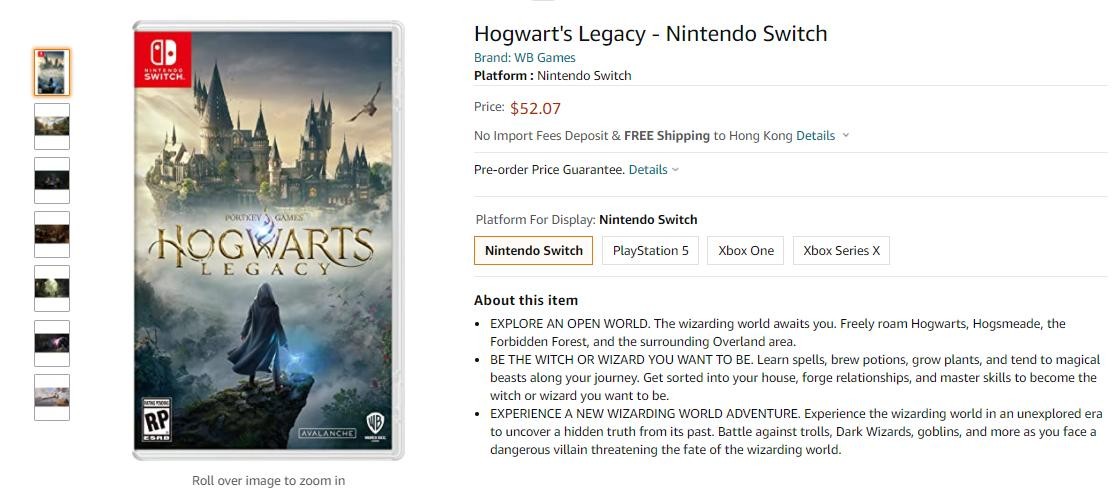 根据官网和零售商列表的信息显示,《霍格沃茨的遗产》即将登录任天堂Switch,亚马逊现已开启了Switch实体版预购。