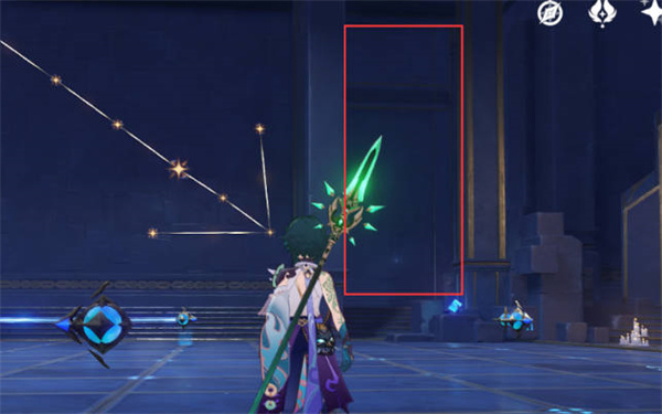 4:完成之后就可以获得一个精致的宝箱,同时星座就变成了下图所示的箭头了,找到红框的位置,进行触碰就可以出现新的道路了,同时靠近左侧边边就会出现隐形桥了,进门左边就是莫娜的海螺了。