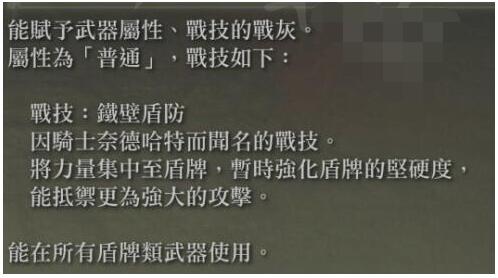 铁璧盾防是能赋予武器属性、战技的战灰。