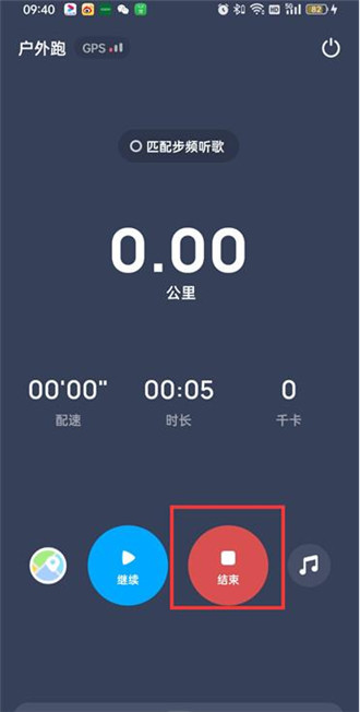 3.最后点击过后在页面中会弹出一个对话框,点击对话框中的【结束跑步】即可;